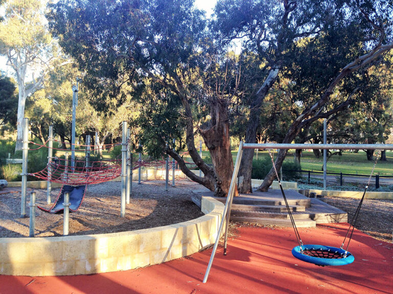 Harold Boas Gardens playground is a hidden gem in West Perth, offering a mix of adventurous play and natural beauty.