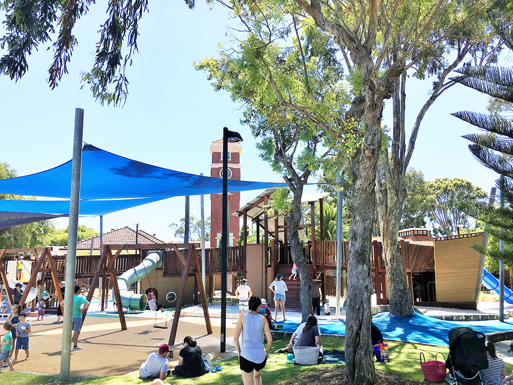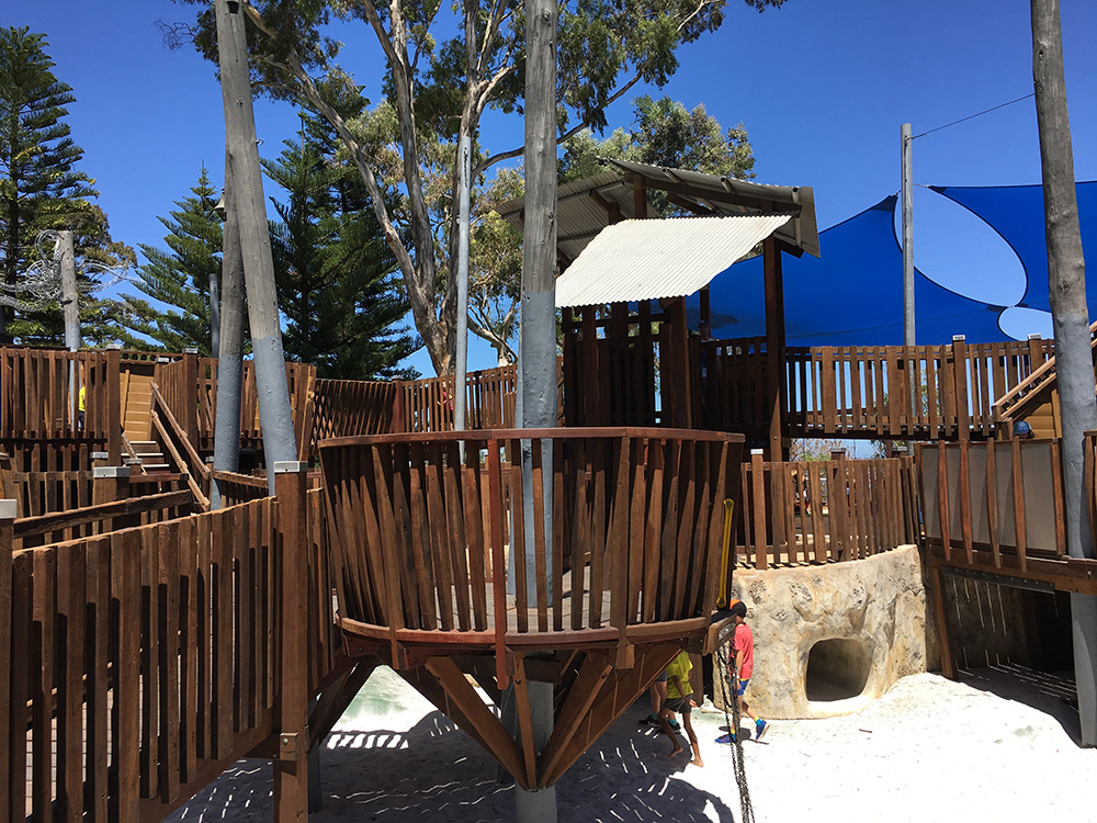 Within the beautiful Goolugatup Heathcote Reserve and overlooking the Swan River and Perth city skyline is a pirate ship playground which sparks endless imaginative play. The large timber ship structure, lookout points, slides and sand area invite kids to climb, explore, pretend and make up their own adventures, while expansive lawns and shady trees make it a lovely destination for a family day out.