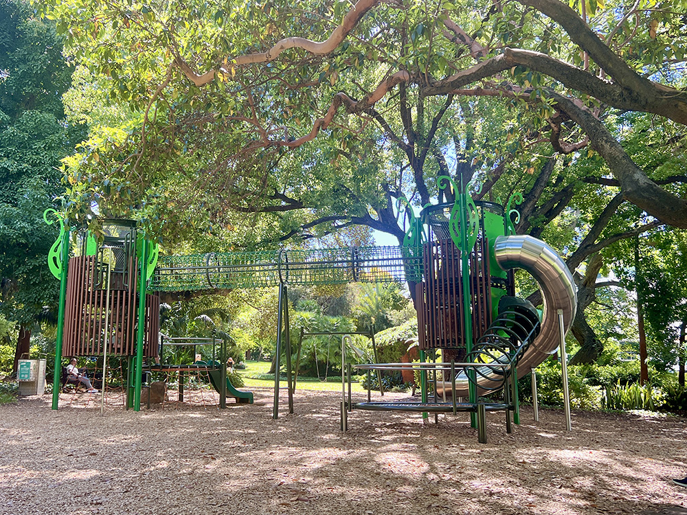 Harold Boas Gardens playground is a hidden gem in West Perth, offering a mix of adventurous play and natural beauty. With climbing towers, lush greenery, and a beautiful waterfall, itโs great for kids to explore and unwind.